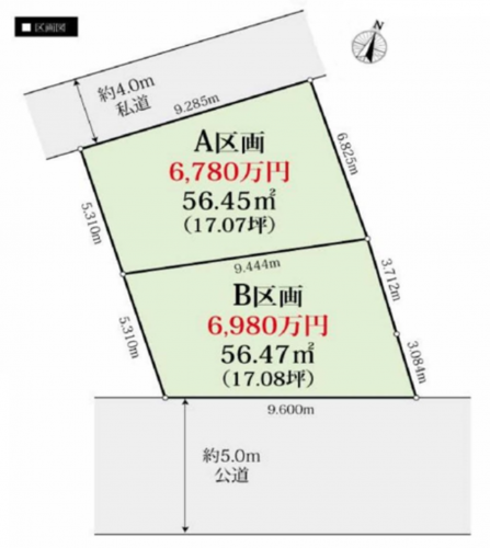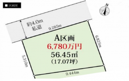 | 接道状況 | 北側 私道4.0m 間口約9.2m | ||