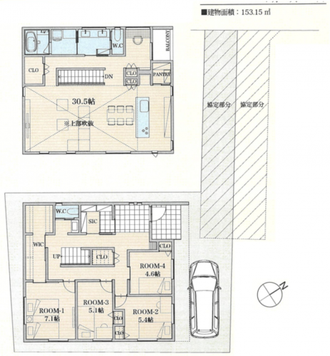 ※上記土地面積にセットバック部分(1.31㎡)含む ※上記接道状況幅員はセットバック後です。 ※司法書士は売主指定とさせて頂きます。 ※敷地内協定部分の白線内は駐車することが可能です。 ※地盤改良、埋設管引込等が必要となる場合は、買主様のご負担とさせて頂きます。 ※準防火地域、高度地区、景観法 【建物参考プラン】 建物面積:153.15㎡ 建物構造:木造3階建 建物参考価格:3,500万円 |