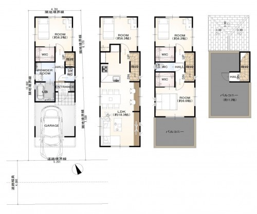 *準防火地域、20m第3種高度地区、日影規制、景観法 【建物参考プラン】 建物面積:117.06㎡ (車庫面積7.87㎡含む) 建物構造:木造3階建 建物参考価格:3,100万円 ※外観パースは建物完成イメージです。 |