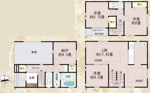 設備 | ガス:都市、上水道:公共、下水道:公共、システムキッチン、カウンターキッチン、食器洗浄乾燥機、洗浄便座、床暖房、複層ガラス、モニタ付インターホン、床下収納、トイレ2箇所、浄水機能付水栓、24時間換気システム | ||