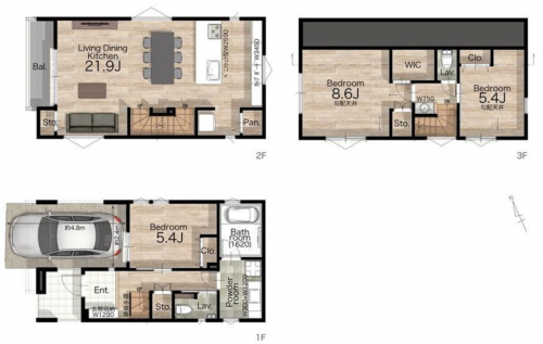 LDK21.9帖、3LDK+車庫