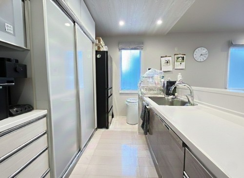 | 設備 | ガス:都市、上水道:公共、下水道:公共、システムキッチン、カウンターキッチン、食器洗浄乾燥機、洗浄便座、浴室乾燥機、床暖房、複層ガラス、Wクローゼット、モニタ付インターホン、トイレ2箇所、宅配BOX、浄水機能付水栓 | ||
