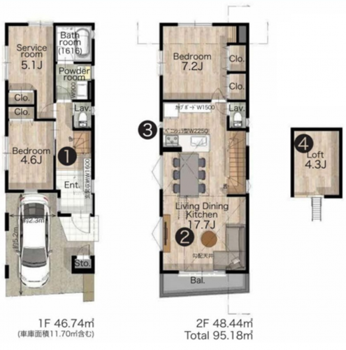 LDK17.7帖、3部屋+ビルドインガレージ付