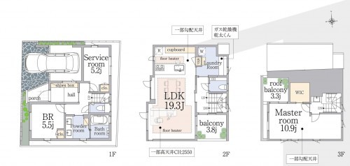 | 設備 | ガス:都市、上水道:公共、下水道:公共、システムキッチン、カウンターキッチン、食器洗浄乾燥機、シャンプードレッサー、洗浄便座、浴室乾燥機、追い焚き、床暖房、複層ガラス、ルーフバルコニー、Wクローゼット、モニタ付インターホン、トイレ2箇所、宅配BOX、浄水機能付水栓 | ||
