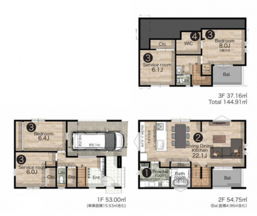※上記建物面積に車庫面積(15.53㎡)、2階Bal.面積(4.96㎡)含む ※パースはイメージとなりますので、実際のものとは異なることがございます。 ※室内写真は、施工会社の施工事例です。実際のものとは異なります。 ※家具・家電等は、販売価格に含みません。 *準防火地域、新防火地域、第2種高度地区、景観法 |