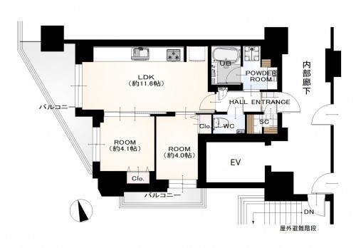 | 専有面積 | 壁芯 48.24㎡ | バルコニー |