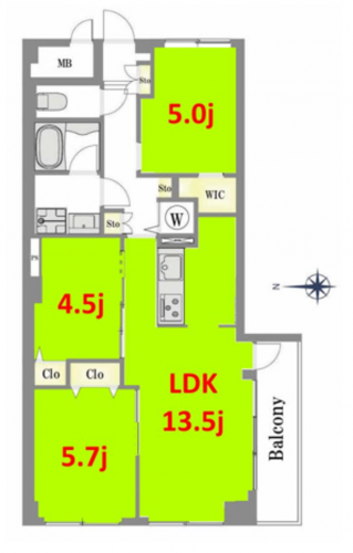 | 専有面積 | 壁芯 66.06㎡ | バルコニー |