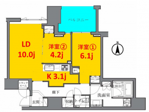 | 専有面積 | 壁芯 61.63㎡ | バルコニー |