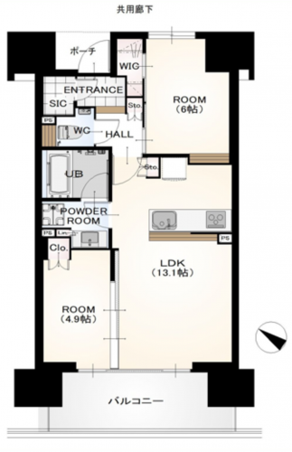 | 専有面積 | 壁芯 54.04㎡ | バルコニー |