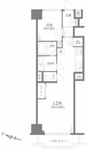 | 専有面積 | 壁芯 46.74㎡ | バルコニー |